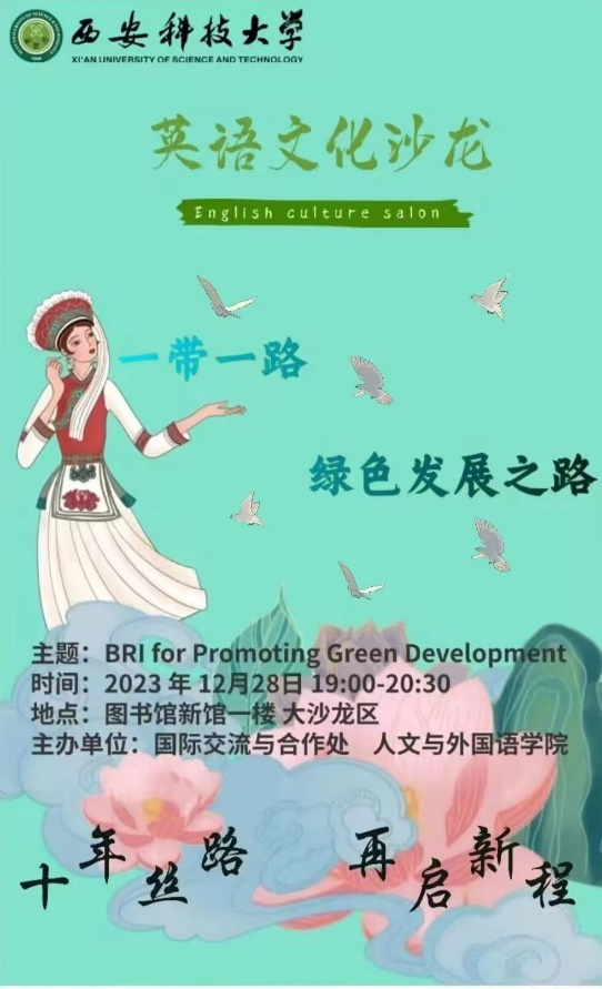为贯彻落实习近平总书记提出的“一带一路”倡议的内涵,丰富学生校园文化生活,12月28日晚,在临潼校区骊山校园图书馆新馆一楼大沙龙区,Beat365中文官方网站与国际交流与合作处联合举办“十年丝路,再启新程”系列英语文化沙龙活动。此次活动的主题为“一带一路——绿色发展之路”。