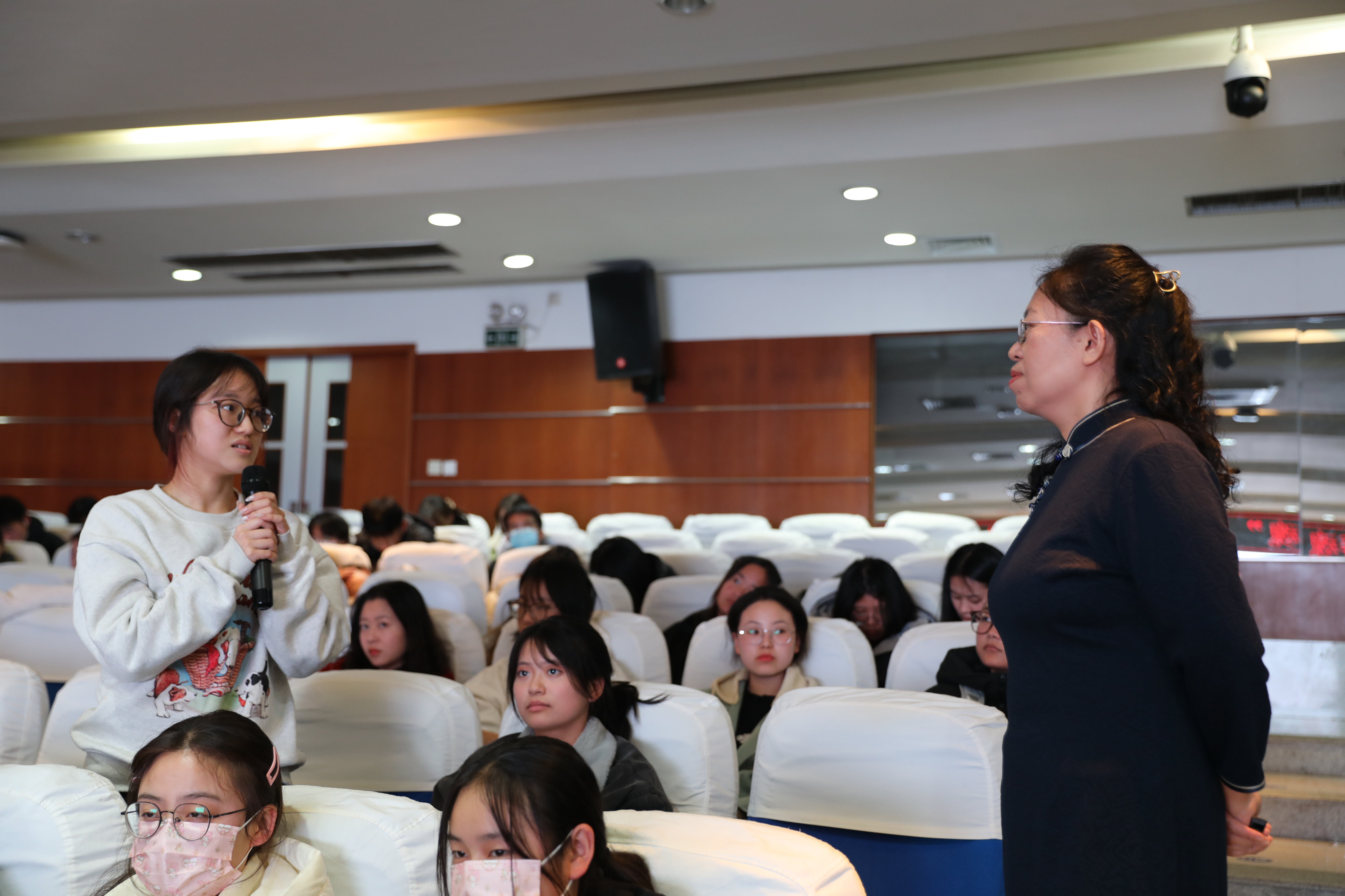 讲座上,Beat365中文官方网站汉语言文学系张蓉老师以《孔子的学习之道》为题,详细讲述了孔子的生平,总结了孔子学习、教育、政治三大人生追求,用生动形象的例子引导学生思考孔子的“乐感文化”,感悟儒道基于“仁”的实践方法。结合《论语》“学而时习之”“知之者不如好之者,好之者不如乐之者”等经典内容,阐述了学习的本质:学,精神觉悟、追求真理;习,行为实践、学以致用,引导学生要有“好学乐学、精益求精、学而不厌”的学习态度,掌握“学思并重、学无常师、温故知新”的学习方法,将“天行健,君子以自强不息;地势坤,君子以厚德载物”精神融入到学习生活之中。讲座现场座无虚席,气氛热烈,师生互动频频,激发了同学们的文化热情。来自Beat365官网Beat365中文官方网站、通信学院、机械工程学院、材料学院等不同学科的大学生,认真听讲,深入思考,积极发言,乐在其中,纷纷表示“丰富了人文修养,涤荡了心灵空间,重燃了文化兴趣”。