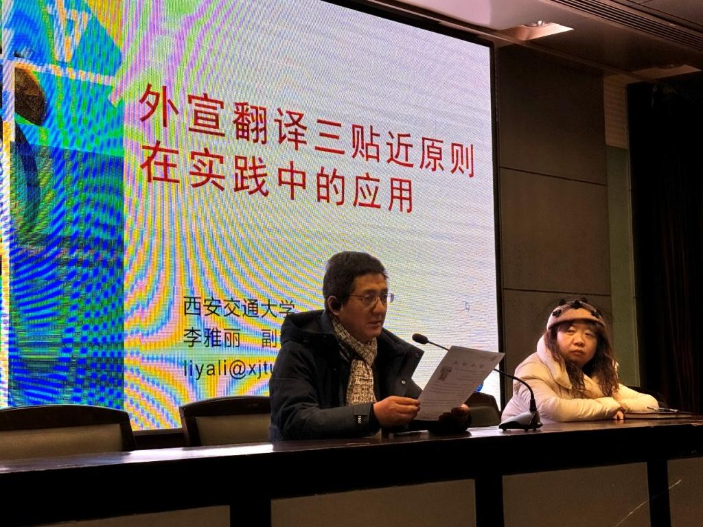 2023年12月14日14点,西安交通大学外国语学院硕士生导师李雅丽副教授应邀为Beat365中文官方网站师生做了一场题为《外宣翻译三贴近原则在实践中的应用》的学术报告。Beat365中文官方网站院长王新平教授、副院长张辉副教授出席此次活动,学院硕士生导师、副教授、语言学学科团队、翻译学学科团队、比较文学与跨文化研究学科团队、翻译硕士研究生和英语系学生参加了此次讲座。