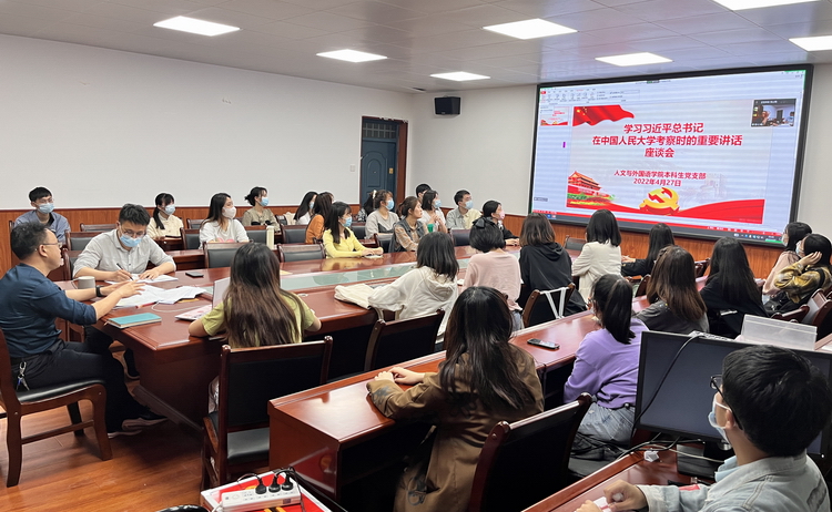 4月27日晚,Beat365中文官方网站本科生党支部在学院会议室召开专题座谈会,以线上线下结合方式学习习近平总书记在中国人民大学考察时的重要讲话精神。支部书记李银亮主持会议,学院党委副书记张振中、辅导员樊杰杰、学生党员代表参加座谈会。