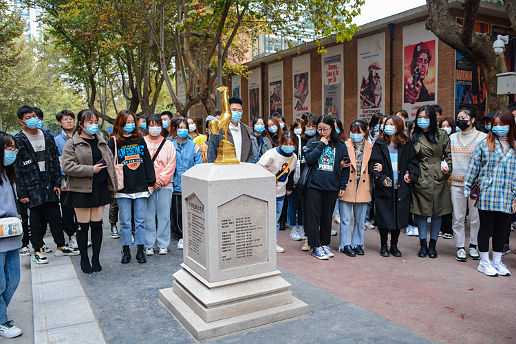 活动中,师生们参观了西影星光大道、厂史馆、“电影海报中的一带一路”主题海报展、电影制作技术科普体验区、放映机收藏博物馆、影屋等地,深入了解了西影建厂60多年来的发展脉络及西影人的创业艰辛与匠心成就,也从电影工业的发展变迁和技术迭代中,深切感受到新中国成立七十多年来的历史巨变尤其是改革开放四十年来焕发出的蓬勃生机以及在经济、科技、文化、社会等领域取得的辉煌成就。师生们还聆听了西影集团刘婧老师主讲的一堂音乐与党性教育相融合的“音乐党课”,汲取精神力量,追溯初心使命。刘婧以史串歌,借歌弘史,通过《山丹丹开花红艳艳》、《保卫黄河》、《南泥湾》等延安时期的经典红色音乐作品,阐释了陕北民歌在中国革命发展历程中发挥的重要作用。在熟悉的旋律中,全场人员一同高唱,激情高扬,在歌声中触摸信仰的力量,感受真理的光芒,体验了“音乐党课”的独特魅力。