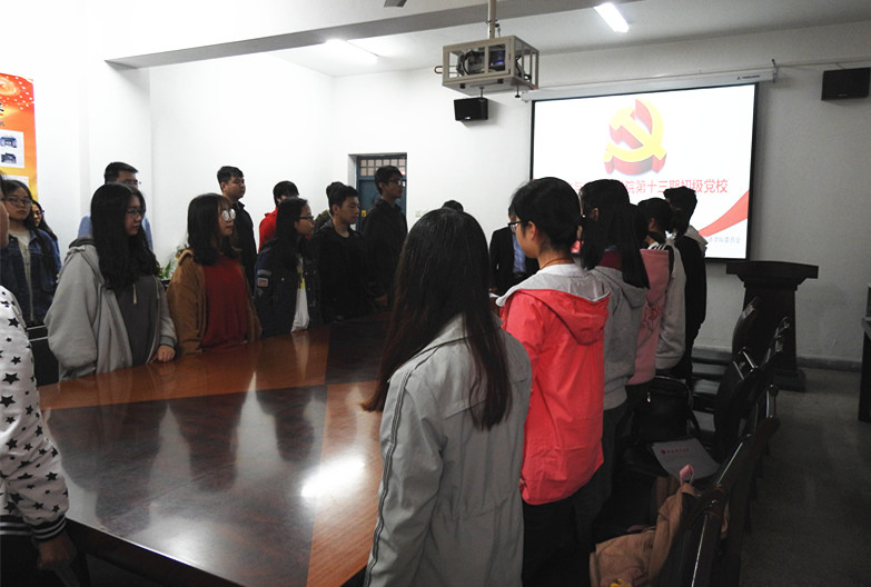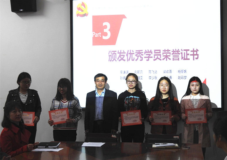 本期党校采用理论实践相结合的方式,分集中培训、自主学习、实践教育三个环节,共计24学时,通过对学员进行集中培训、分组学习讨论、观看党性教育片、义务劳动、自主学习和结业考试等六个模块,重点研读了十九大报告、学习习近平新时代中国特色社会主义思想思想等内容。共有44名学员参加学习,40名学员顺利结业。车谦渊、高新月、陈飞达、郭欢喜、杨斯帆、孙锦慧、梁婧雯、李少秋、王元春、赵彩梦等10名学员获“优秀学员”称号。