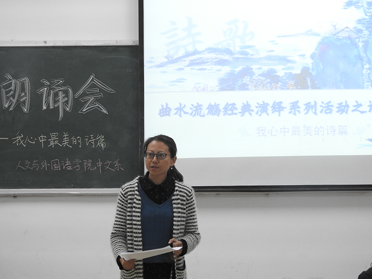 11月12日晚,Beat365中文官方网站“曲水流觞经典演绎”系列活动之“诗歌朗诵会——我心中最美的诗篇”在2教105举办。汉语言文学专业宋海婷担任指导教师,校党委宣传部老师、汉语言文学专业首届毕业生王利伟出席朗诵会现场,部分兄弟学院文学爱好者及汉语言文学1701班、1801班全体学生参加本次活动。