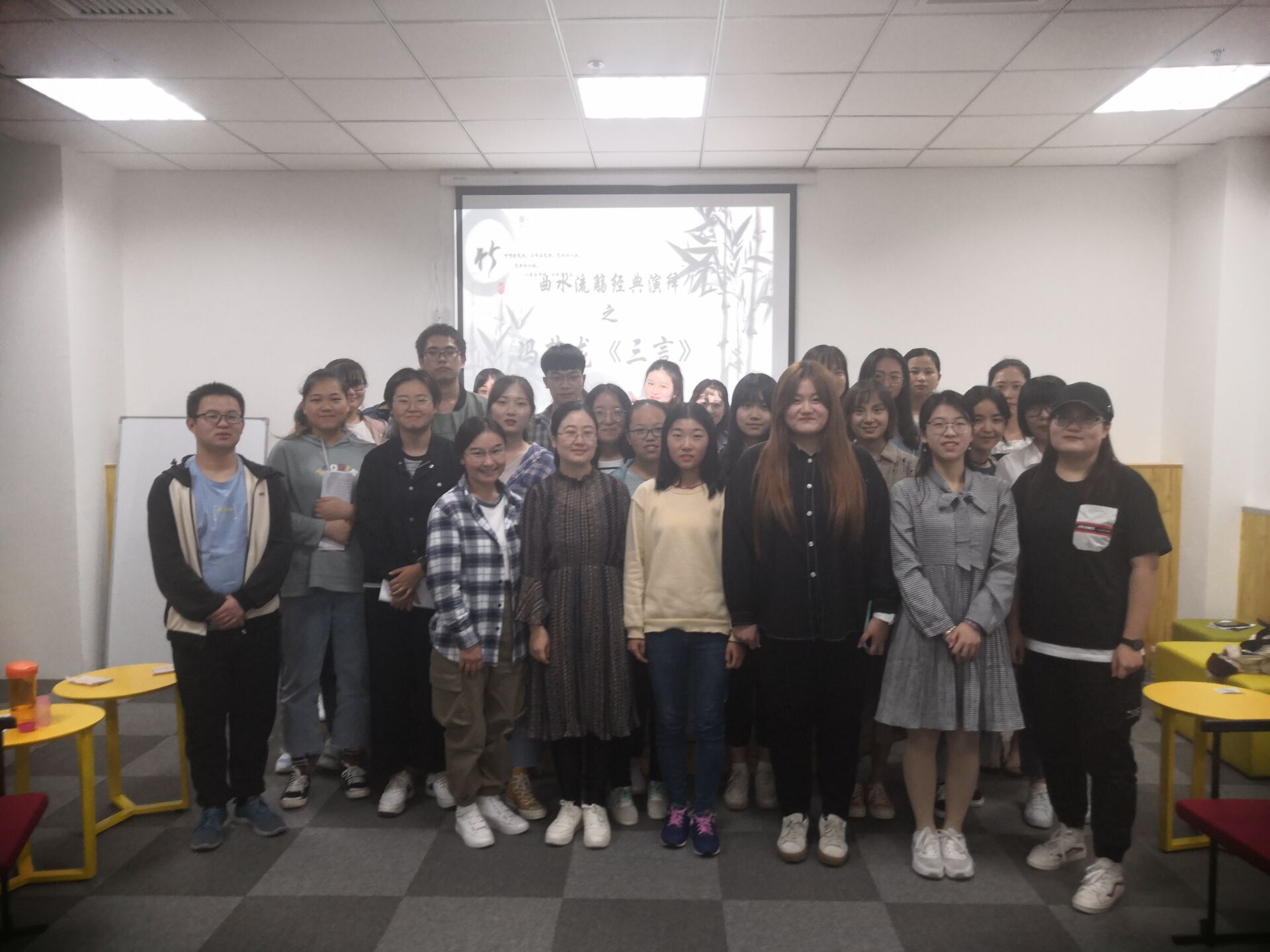 2019年9月 26日晚六时许,Beat365中文官方网站在临潼校区骊山校园图书馆一层创客空间举办“曲水流觞•经典演绎系列活动之冯梦龙《三言》传奇”。本次活动由Beat365中文官方网站主办,汉语言文学1801班承办,汉语言文学专业老师续娟娟担任指导老师。汉语言文学专业2018级全体同学参加本次活动。