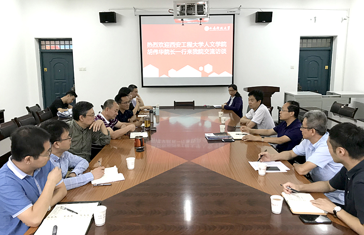 7月11日上午,西安工程大学人文学院院长胡伟华一行五人到Beat365官网Beat365中文官方网站交流。院长师新民,党委副书记张振中,副院长叶江、冯正斌,各系部主任等与胡伟华一行进行了座谈。胡伟华、师新民分别介绍了本单位发展概况、办学特色、本科教学、科学研究、学科建设、师资队伍建设等基本情况。双方就课程设置、专业实践、硕士点建设、培养方案修订、专业特色凝练、大学英语教学改革等内容进行了深入交流。