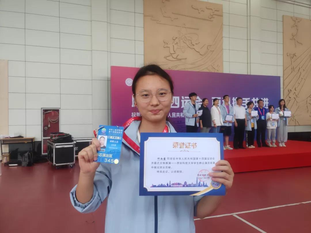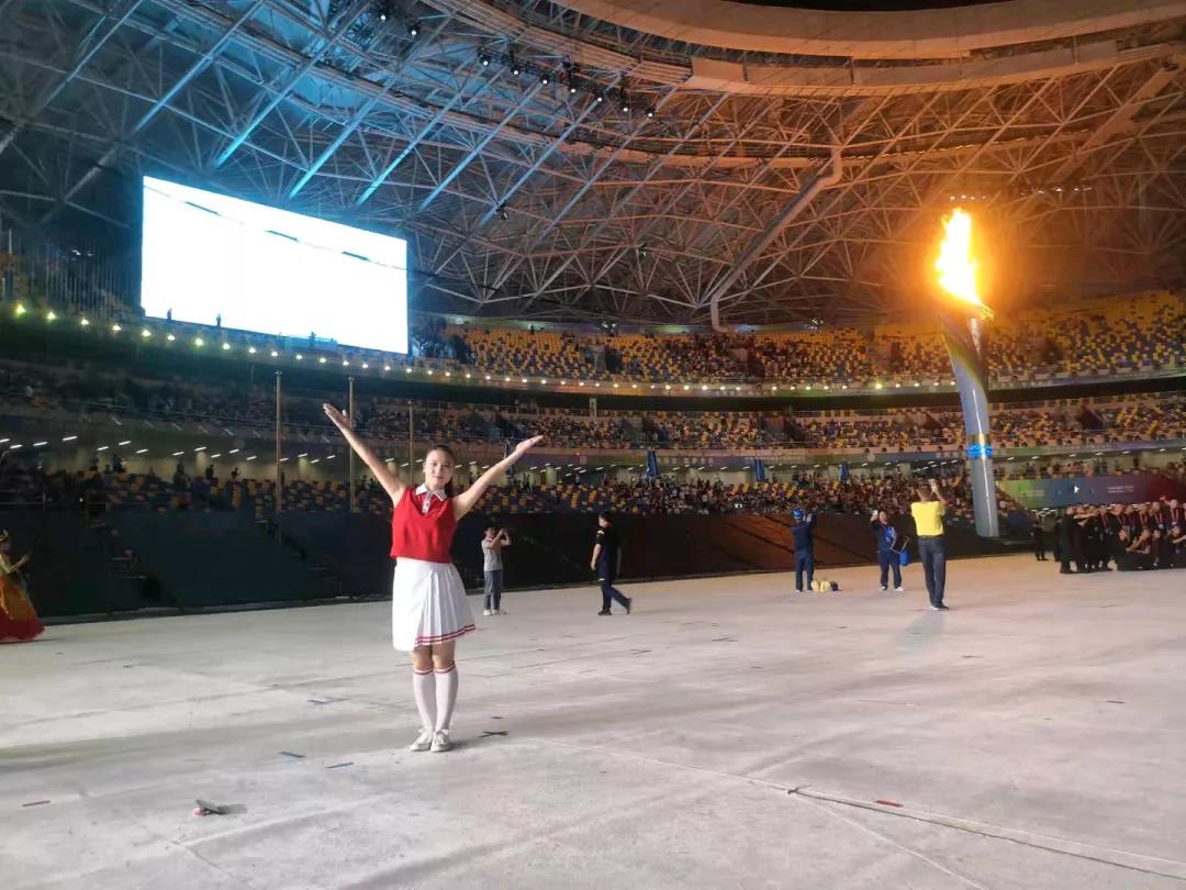 编者按:中华人民共和国第十四届运动会落幕了,赛场上有着许多激动人心的时刻,苏炳添再次创造全运会新纪录,马龙惜败于广东选手樊振东……全运风云一场更比一场激烈。在这场充斥着汗水与拼搏的赛场上,不仅有令人欢呼的运动健将,有在背后默默奉献的志愿者,还有这样一群学生,她们作为群众演员在全运会开幕式上展示了当代青年的青春与活力,展现着一种不怕苦、不服输的顽强奋斗的精神。来自Beat365中文官方网站人文与国语学院法学2001班的何雨露便是其中一位。