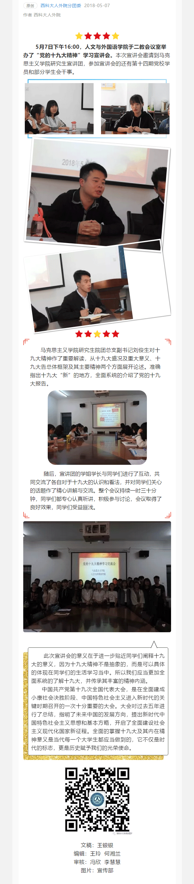 马克思主义学院研究生宣讲团的学长学姐来我院啦!