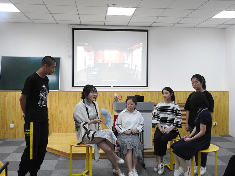 第五组“群魔乱舞的葫芦娃”生动改编了苏童发表于90年代的中篇小说《妻妾成群》,演绎者分别抓住四个妻妾和男主角陈家少爷的性格特点,再现了陈家在“妻妾成群”明争暗斗中走向精神崩溃的悲惨命运。尤其几位同学同台表演时强烈的戏剧冲突,更是将活动氛围推向高潮。