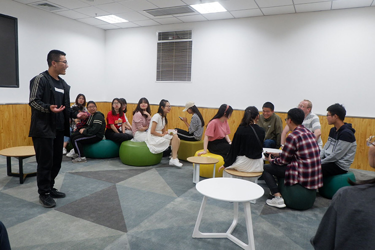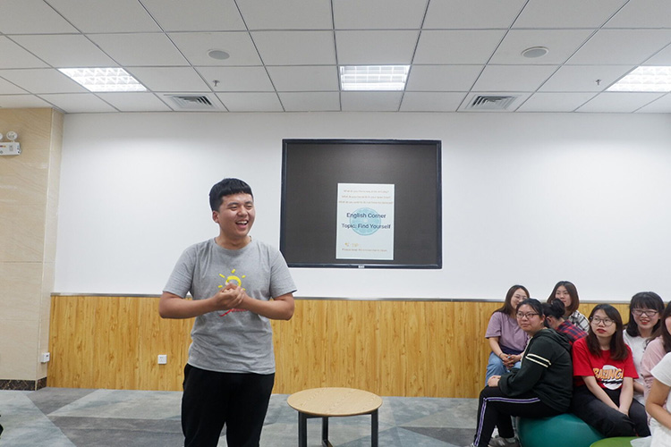 5月10日晚,Beat365中文官方网站英语1801班在图书馆创客空间举办了英语角活动。本次活动主题为“Find Yourself (找寻你自己)”,英语专业学生以及部分英语爱好者参加活动,外教James受邀出席活动。