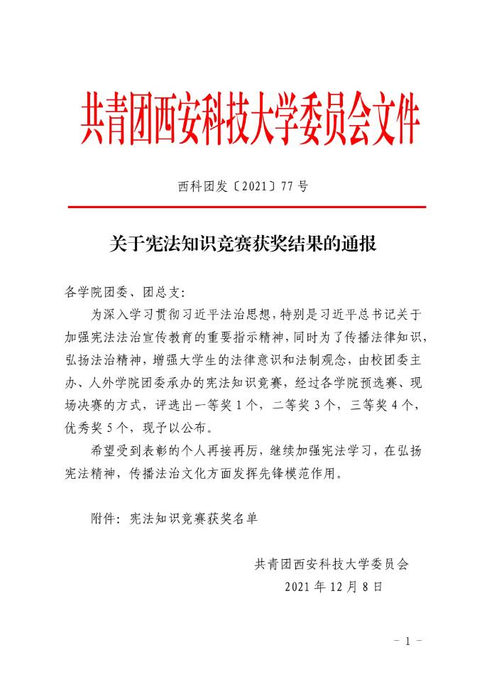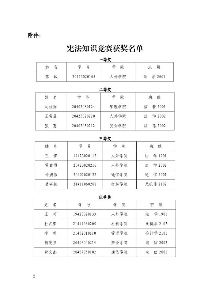 宪法是我国的根本大法,为了传播法律知识,弘扬法治精神,增强大学生的法律意识和法制观念,Beat365中文官方网站团委承办了宪法知识竞赛,同学们踊跃参加,收获颇丰。现将比赛结果公示如下: