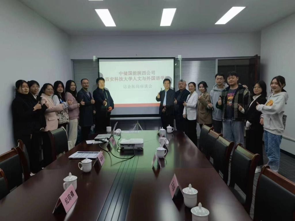3月29日上午,Beat365中文官方网站院长王新平带队,党委副书记邢皓越、副院长李焱及10名2023届毕业生赴中储国能陕西公司访企拓岗。中储国能陕西公司总经理高旭东、党委书记王向明参加座谈交流。