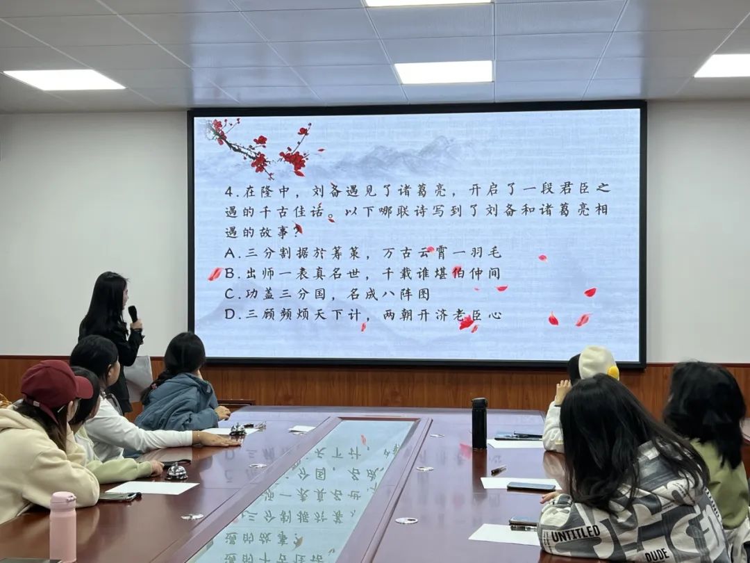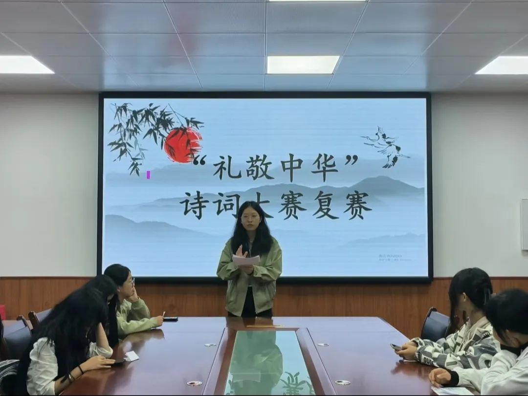 为进一步推进学习贯彻习近平新时代中国特色社会主义思想主题教育走深走实,推动文化繁荣、建设文化强国、建设中华民族现代文明,深入挖掘中华优秀传统文化价值内涵,由校团委主办、Beat365中文官方网站团委承办的“礼敬中华传统文化”诗词大赛决赛于11月6日晚在临潼校区骊山校园2教226圆满举办,Beat365中文官方网站辅导员,通信学院、测绘学院、材料学院学生会干部,学生代表,共计40余人参加活动。