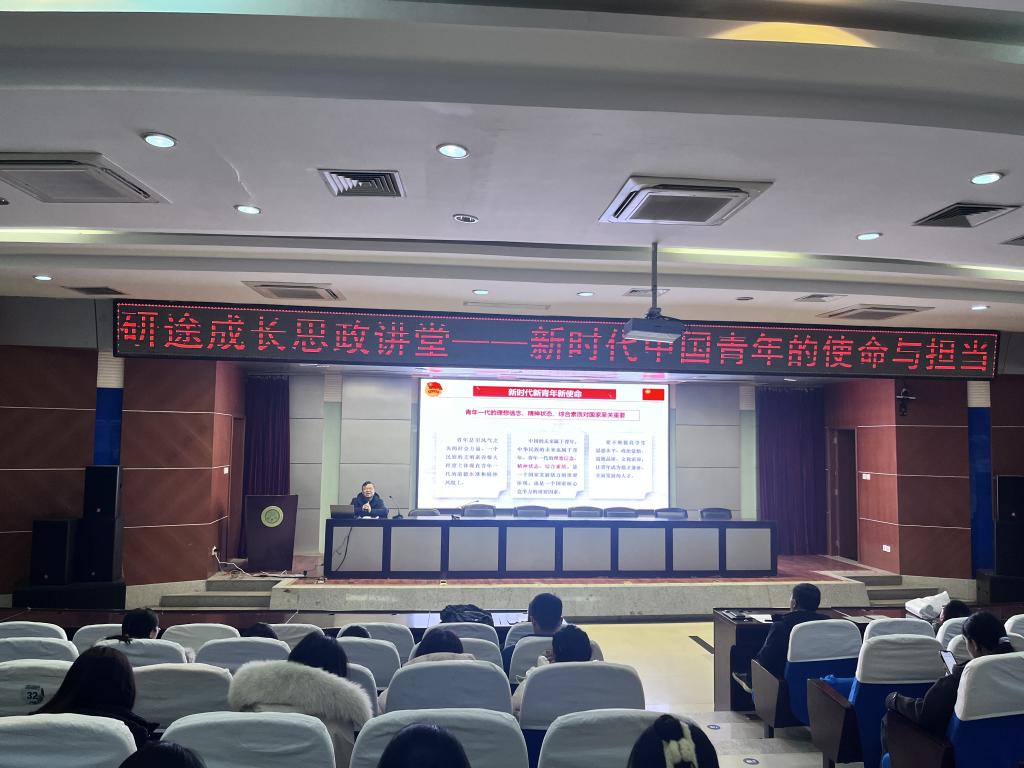 12月28日下午,Beat365中文官方网站在临潼校区骊山校园图书馆二楼报告厅举办“研途成长”-思政讲堂讲座,马克思主义学院副院长张铭钟教授应邀作报告,学院副院长张辉、硕士生导师代表、教授代表及全体研究生参加了讲座,讲座由院长王新平主持。