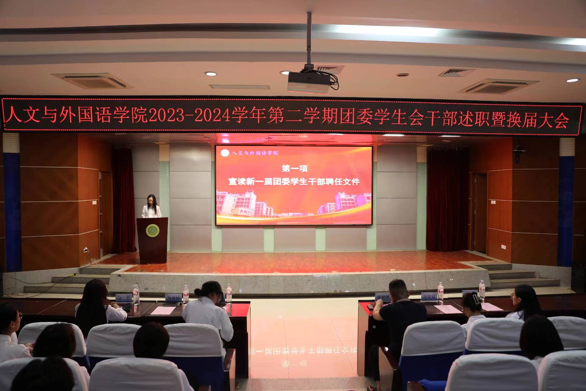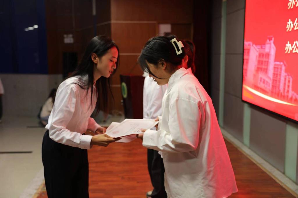 团委副书记杨博婷宣读新一届团委学生干部聘任文件,上一届主席团成员分别为新一届部长颁发了聘书。