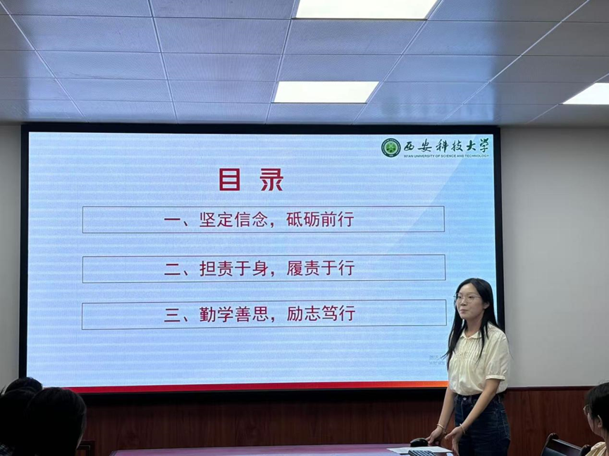 为做好2024级研究生入学教育工作,帮助新生尽快适应和融入新的学习科研环境和校园文化生活,树立学术科研信心,明确自身发展方向,9月26日下午,在骊山校园2教226会议室,Beat365中文官方网站举办“筑梦研途,实践引领成长”分享会,学院2024级全体研究生参加了分享会,会议由研究生辅导员芮智刚主持。