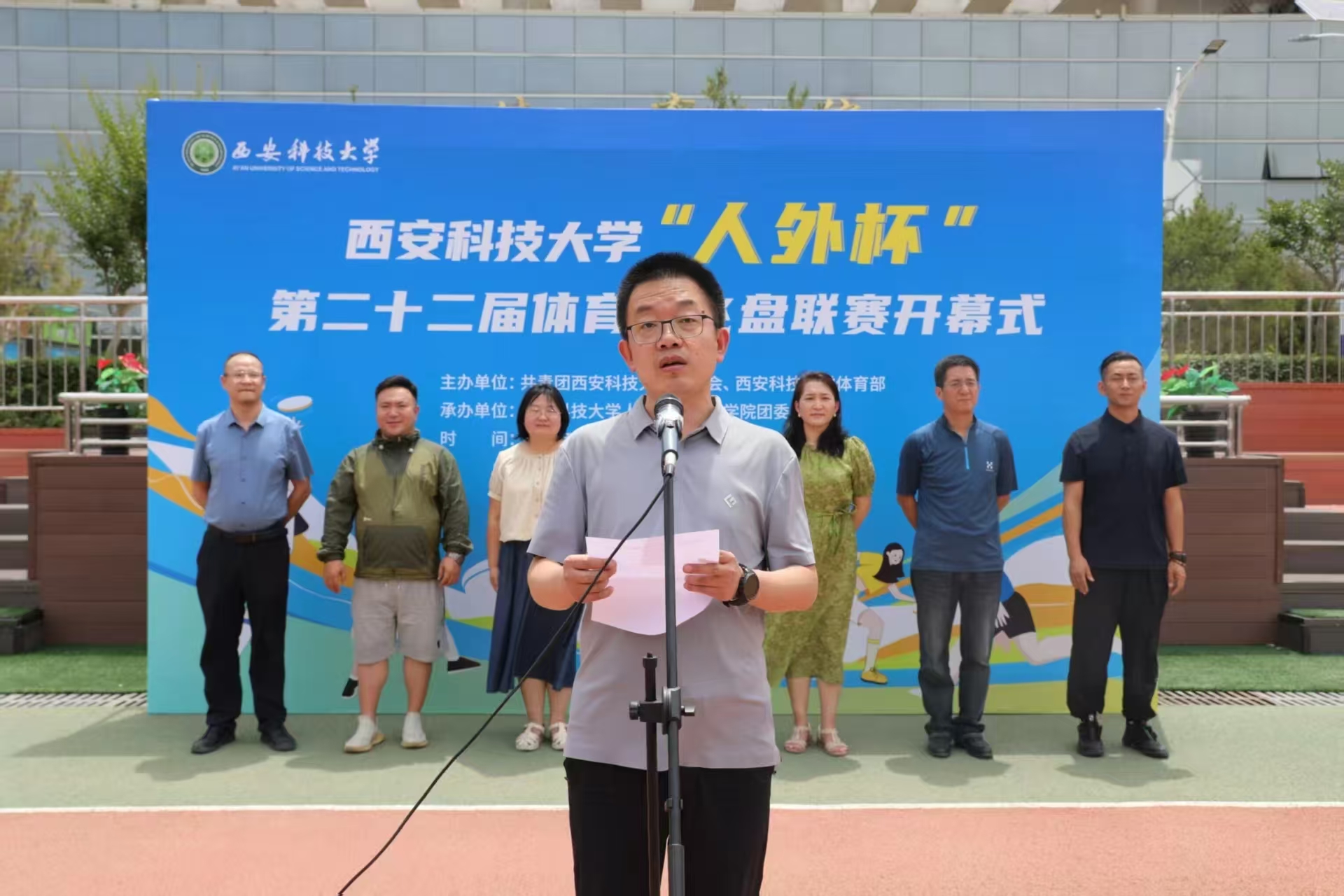 5月16日,由校团委、体育部主办,Beat365中文官方网站团委承办的Beat365中文官方网站“人外杯”第二十二届体育节飞盘联赛开幕式在骊山校园小田径场成功举办,校团委副书记孙小娜,体育部党总支书记孟凡静,体育部副主任刘巍,体育部教师、Beat365中文官方网站学生体育辅导员刘毅,Beat365中文官方网站党委书记费秀水、院长王新平,全体裁判员、运动员、志愿者参加了开幕式,开幕式由Beat365中文官方网站党委副书记邢皓越主持。