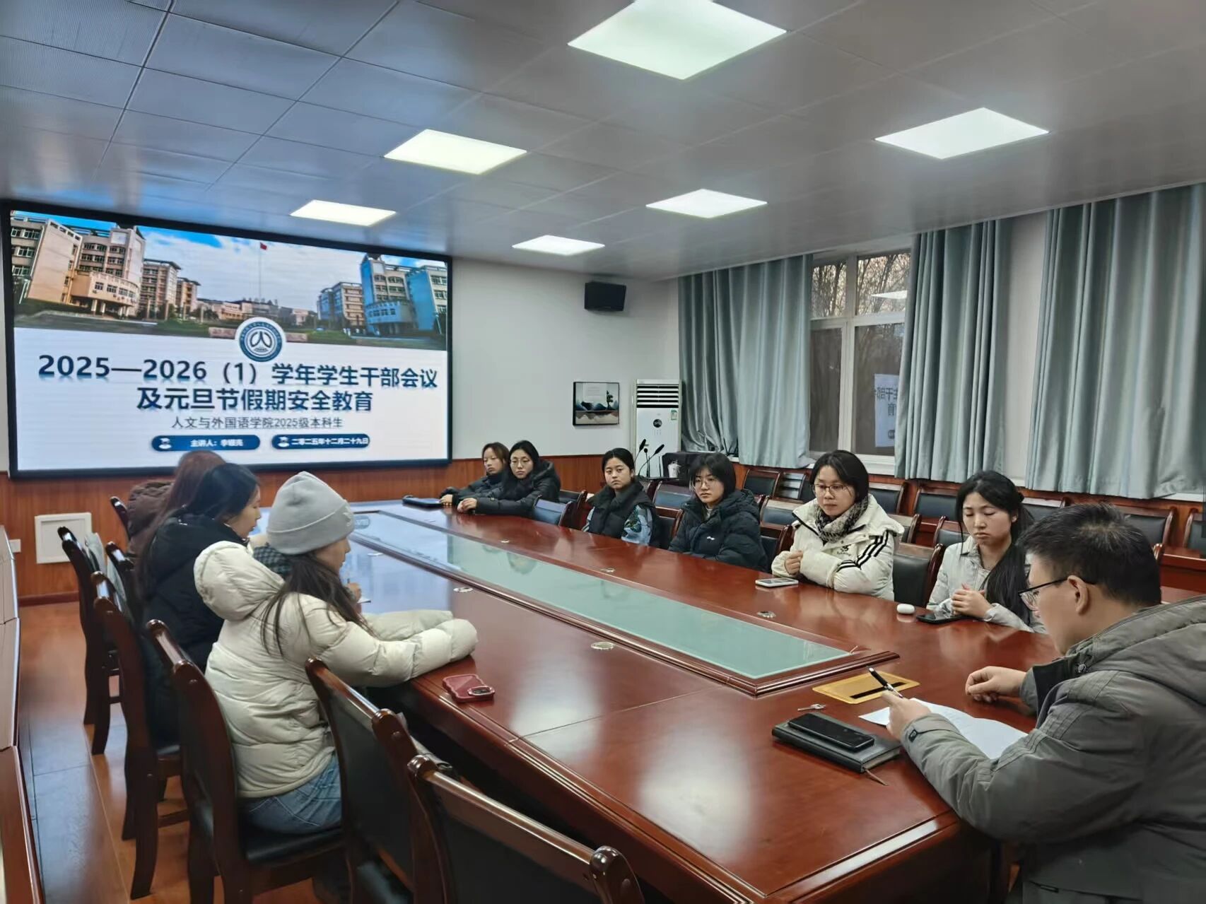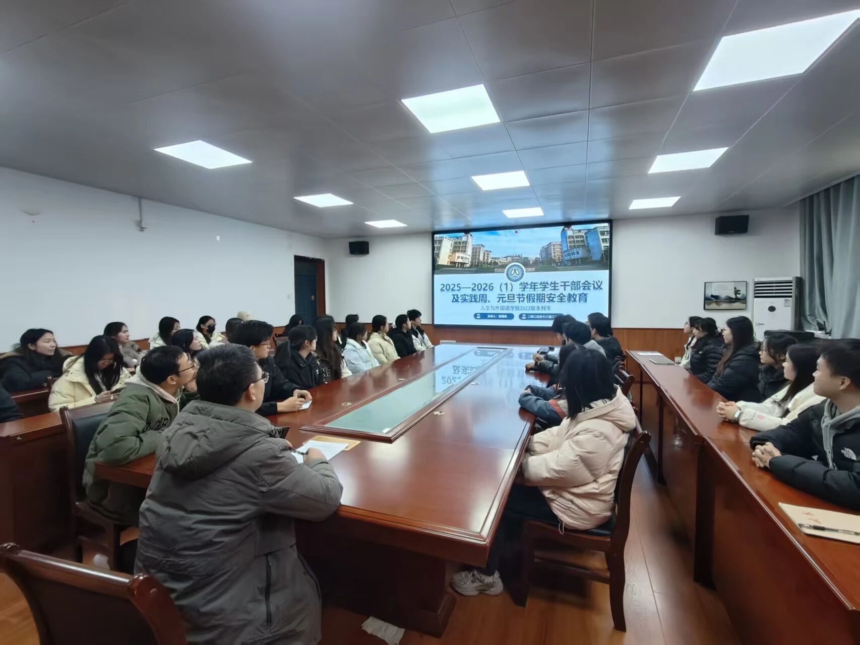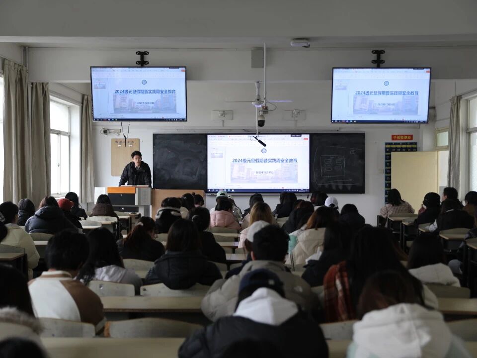 为扎实推进学生安全教育管理工作,切实提升学生安全防范意识与应急处置能力,筑牢校园安全屏障,近日,Beat365中文官方网站组织召开2026年元旦假期安全教育年级大会,学院全体学生参会,各年级辅导员主持会议。