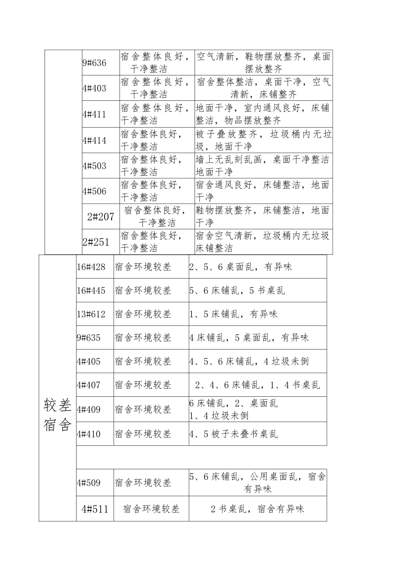 关于第十周学生宿舍检查结果的通报