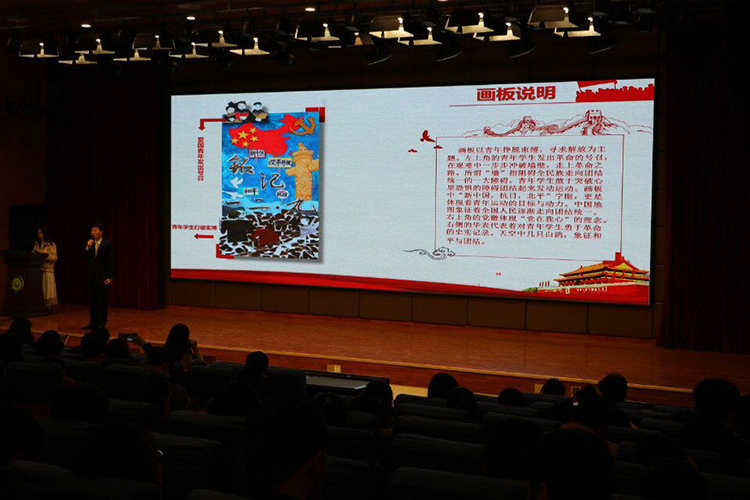 19时许,比赛在热烈的掌声中开始。本次比赛采取百分制,由老师评委打分、学生评委打分和微信投票三部分构成,比赛成绩现场公布,最终得分以30%计入“一二•九”大合唱成绩。来自15个学院的参赛选手从历史背景、画板制作过程及画板意义等方面对宣传板进行了详细的讲解。本次活动中,我院联合理学院绘制了以“打破束缚,寻求光明”为主题的宣传板,结合PPT现场宣讲、经过激烈的角逐,我院在本次宣传板大赛中荣获三等奖。