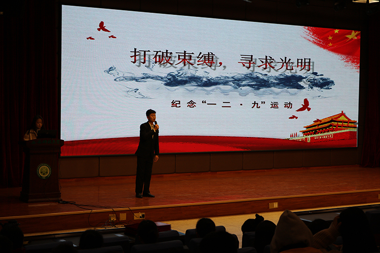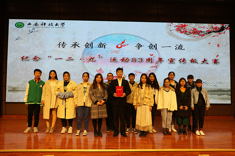 11月29日,由校团委主办的以“传承创新,争创一流”为主题的纪念“一二•九”运动83周年宣传板大赛在煤炭科技中心一楼报告厅举行。校直属单位党委副书记王雪莉、校团委李卫鹏、学工部杨建涛出席活动,各学院参赛选手和学生代表500余人观看比赛。