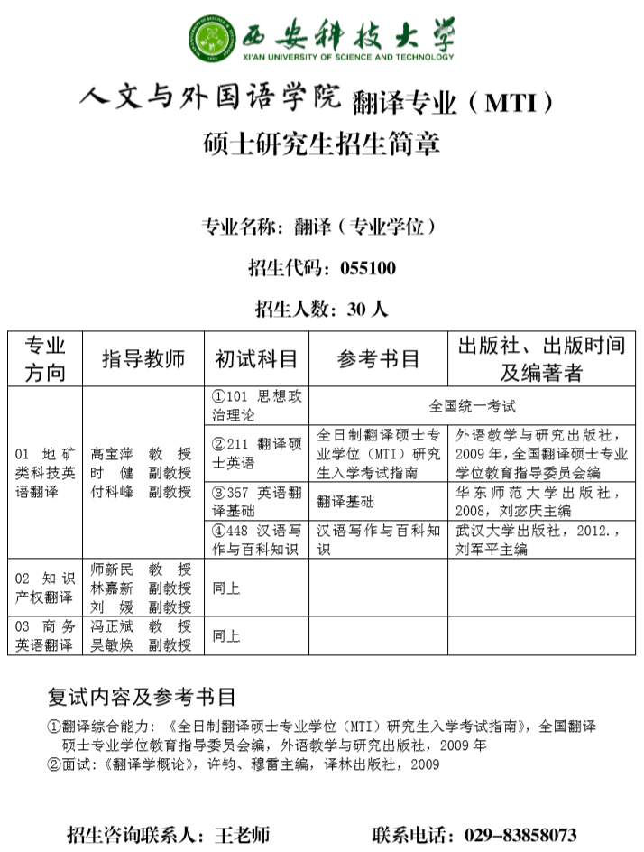 2019年翻译硕士(MTI)招生简章