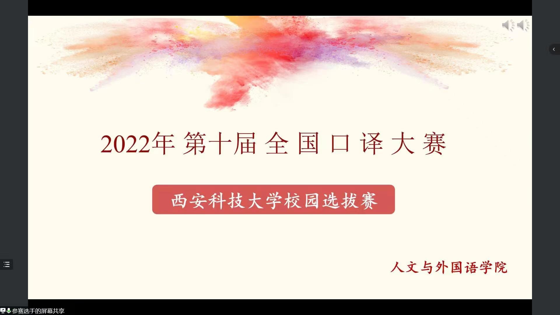 5月26日晚,第十一届全国口译大赛Beat365中文官方网站校园选拔赛(决赛)在线上举行,Beat365中文官方网站英语系教师张燕清、杜戍涓、廉张军、杨宁、张梦原担任大赛评委,英语2001班学生王宇桦任大赛主持人,共有10位选手参加此次比赛。