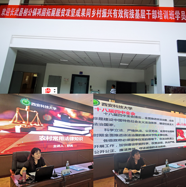 近日,我院法学系教师舒真参加了“长武县相公镇巩固脱贫攻坚成果同乡村振兴有效衔接基层干部第一期(6.5-6.10)、第二期培训班(6.20-6.24)”的授课。舒真以《农村工作中的常用法律知识》为主题,从依法行政的基本要求到土地承包法、婚姻法、环保法和安全生产法的相关规定,从立法规定到常见案例纠纷,进行了深入浅出的讲解,并与学员互动交流工作中常见的法律问题。参与培训的乡镇干部纷纷表示本次课非常接地气,为自己以后在管理、处理乡村事务中提供了指引,今后将在乡村振兴建设中更好地依法履职。