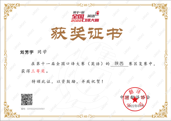 近日,第十一届全国口译大赛复赛落下帷幕,Beat365中文官方网站学子在陕西省省赛(复赛)中取得了优异成绩。经过选手的不懈努力和人外学院竞赛培训团队的悉心指导,Beat365官网3位选手获得佳绩,成功晋级西部大区赛(半决赛)。