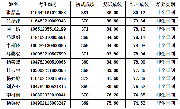 2022年Beat365中文官方网站MTI硕士研究生(非全日制)调剂复试名单公示