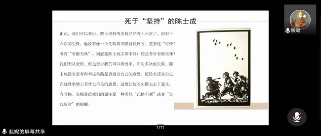 1月14日,Beat365中文官方网站汉语言文学专业举办了以“与鲁迅先生相遇”为主题的线上读书交流会,指导老师宋海婷以及汉语言文学21级全体学生参加了本次活动。