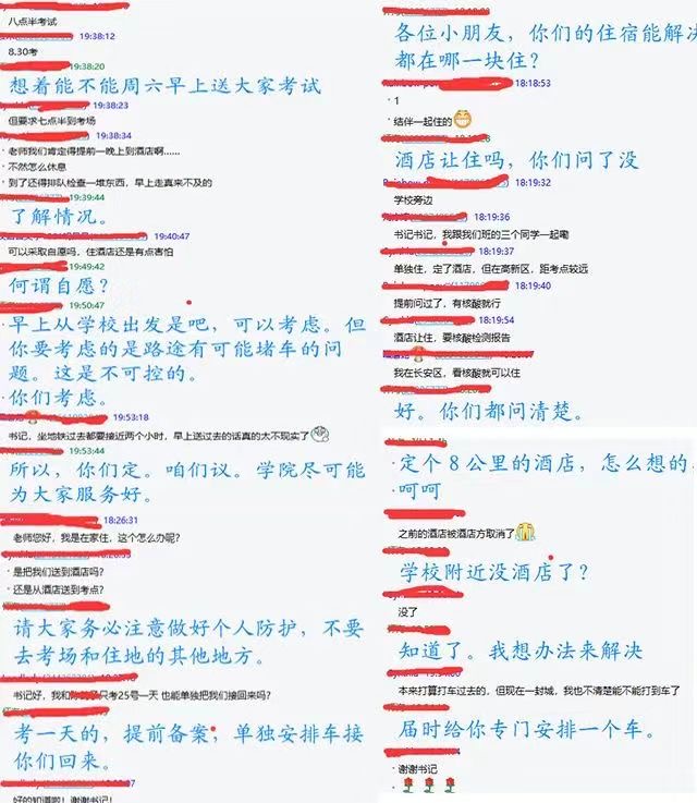 此外,严峻的防控形势使得考试政策一直在更新,辅导员老师通过各种途径发布最新考研政策和要求,即时提醒学生密切关注最新要求,按时参加核酸检测并确保持有48小时内两次核酸证明。