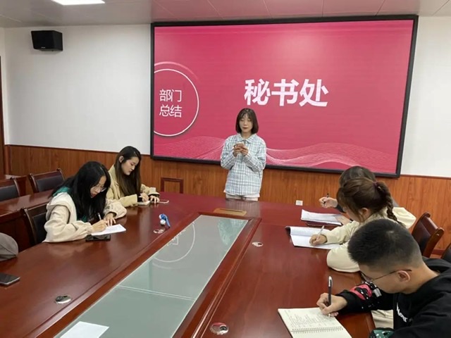 秘书处杨瑞娟:秘书处相继参与了招新、部门见面会、教师节、中秋节以及换届大会等重要活动的相关文秘工作。我们将继续努力,为学生会的发展贡献自己的力量。