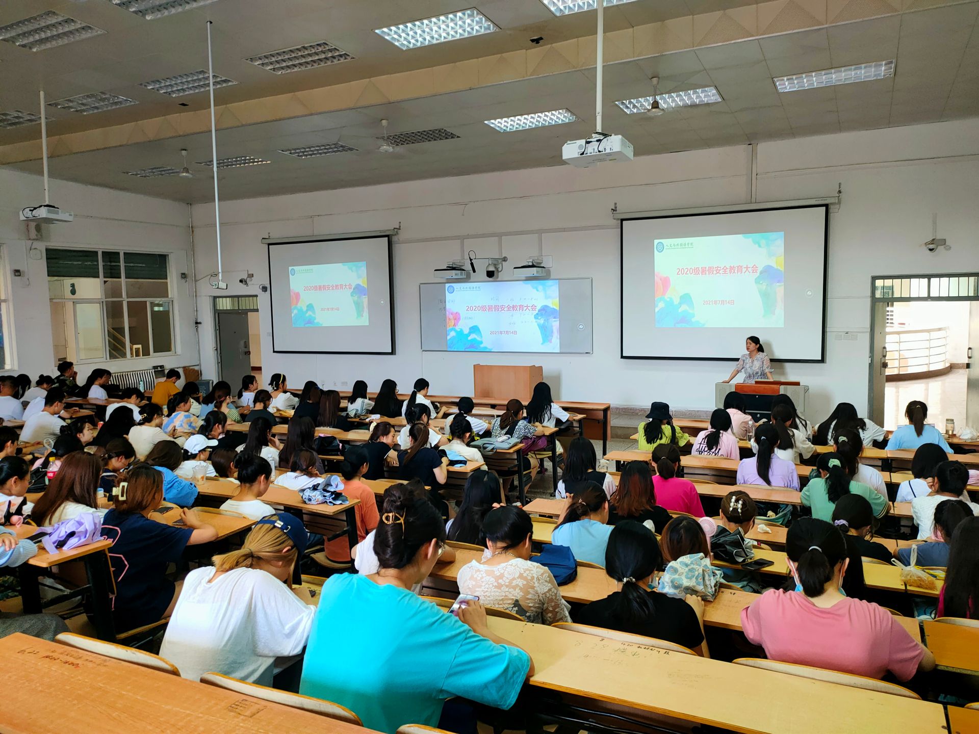 本次暑假安全教育大会对学生在假期生活中可能出现的问题进行提醒,提高了同学们的安全防范意识,坚定了大家为未来奋斗的决心。