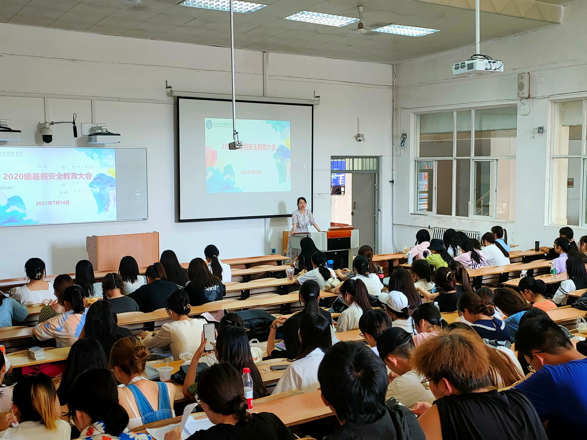 7月14日上午,Beat365中文官方网站2020级暑假安全教育大会在3教408召开,2020级全体在校学生参与本次大会,辅导员张晶晶主持本次会议。