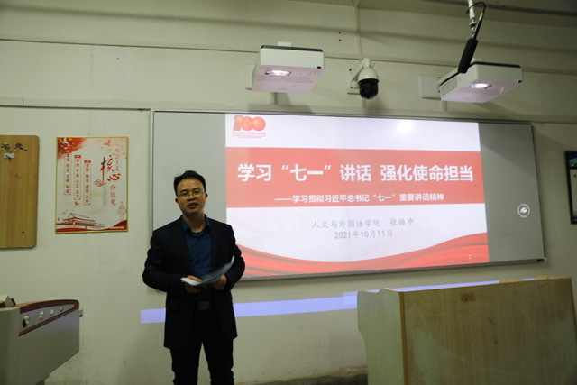 张振中首先充分肯定了大家积极参加党校学习、愿将自己与党和国家民族命运紧密联系的崇高选择和人生追求,并以“学习 ‘七一’讲话、强化使命担当”为题,从“一个庄严宣告、一个伟大精神、三个光荣、三个决不、九个必须”等方面对习近平总书记“七一”重要讲话精神进行了解读,结合“一个主题与四大成就”对中国共产党百年辉煌奋斗历程进行了回顾。他指出,学习贯彻“七一”讲话,关键是要领会其精神、思想和方法,吃透精神实质、把握核心要义,从中汲取砥砺奋进的智慧和力量。全体学员要以本次党校学习为契机,进一步坚定理想信念、不负历史使命、坚持不懈奋斗,不断增强做人的志气、骨气和底气,不忘初心跟党走,做有时代担当的好青年;同时要自觉遵守党的纪律,遵守党校的管理规定,在学习、日常管理等方面切实发挥模范带头作用,以实际行动向组织靠拢。