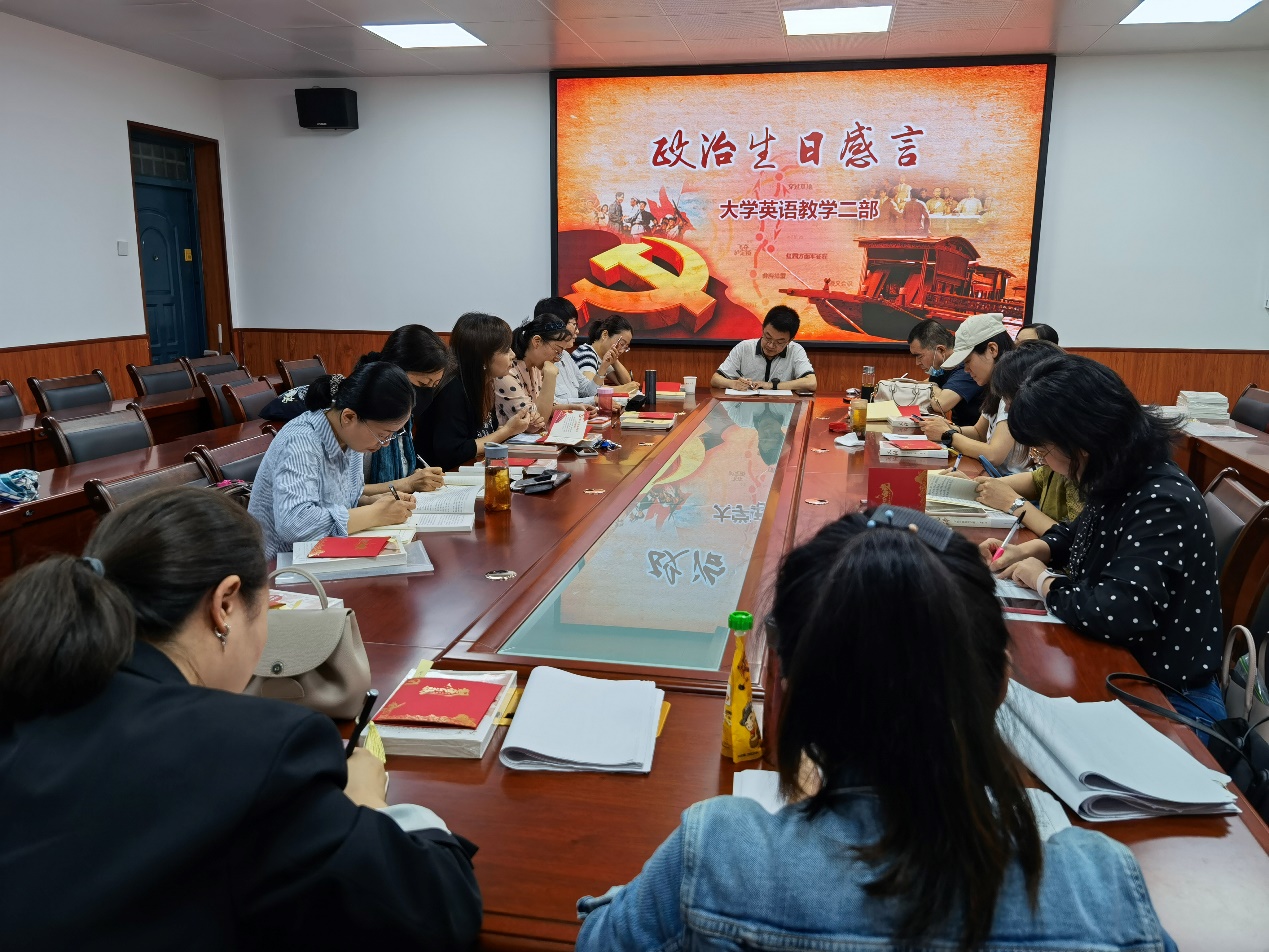 6月17日上午,我院大英二部党支部为全体党员举办了一场意义非凡的集体生日会---政治生日会,暨“永远跟党走”主题党日活动。活动由支部书记李焱主持,除个别有教学任务党员外,支部其余党员均参加了此次活动,院党委书记费秀水受邀出席本次活动。