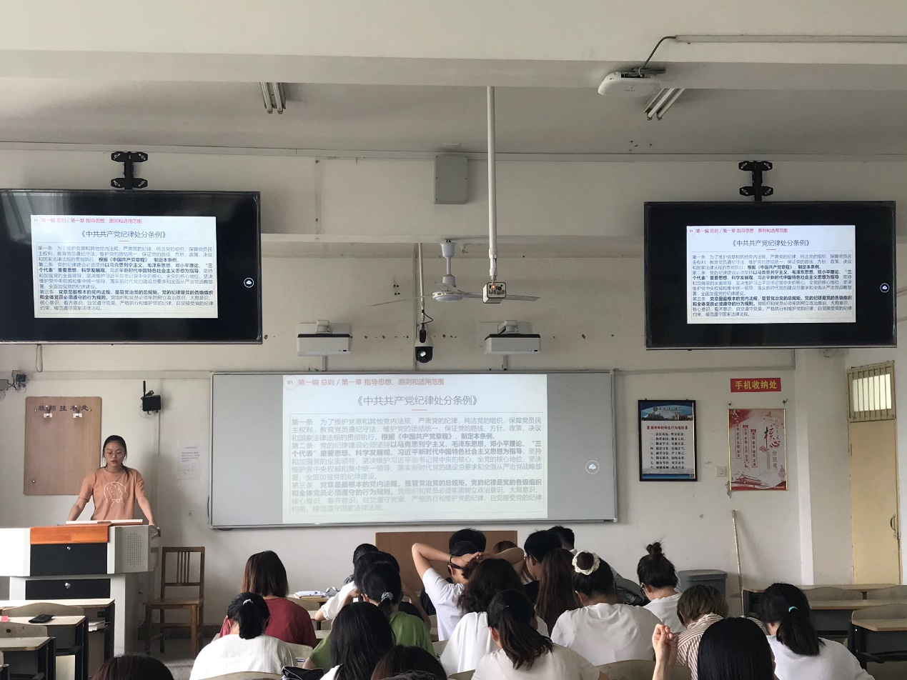 本次会议由第五、六、七、八组分别就《中国共产党党员教育管理工作条例》《中国共产党发展党员工作细则》《中国共产党纪律处分条例》《习近平新时代中国特色社会主义思想思想学习问答》《中国共产党普通高等学校基层组织工作条例》《中国共产党简史》《中国共产党支部工作条例(试行)》《毛泽东、邓小平、江泽民、胡锦涛关于中国共产党历史论述摘要》为主要内容向在场党员进行讲解。