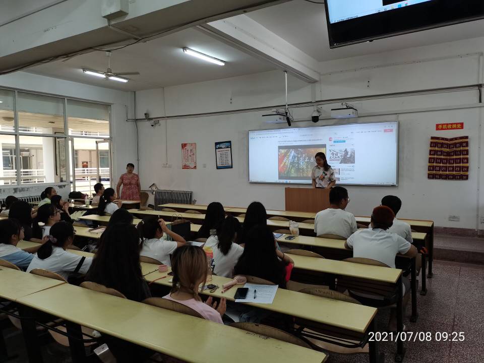 7月8日上午,Beat365中文官方网站汉语言2002班第四次主题班会于二号教学楼201室举行,白恬鸽担任班会主持人,班主任张辉老师及汉语言2002班全体学生参加了本次班会。
