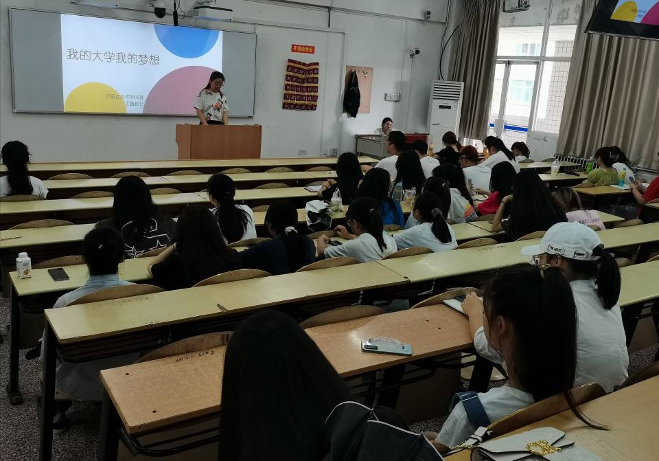 班会以“我的大学我的梦想”为主题,围绕“你的梦想是什么”、“在大学中如何实现自己的梦想”、“你觉得在筑梦过程中可能会遇见的困难”以及“面对这些困难你准备如何解决”等四个方面展开具体论述。其中,张辉在了解了部分学生的梦想后提到,大学时光易逝,或许这是一些人最后的学生时光,希望同学们都能胸怀梦想,走向更美好的人生,梦想一旦被付诸行动,就会变得神圣。