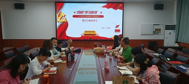 2021年5月24日上午,Beat365中文官方网站大英一部全体党员在学院226会议室召开了第三次党员集体学习。本次学习以“四史学习教育”为主题,在支委委员张军锋同志的领学下,学习了《讲好中国共产党的故事》《总结党的历史经验,牢固树立“四个意识”》《以“赶考”的清醒和坚定答好新时代的答卷》和《中华民族伟大复兴历史进程的大跨越》四篇文章。