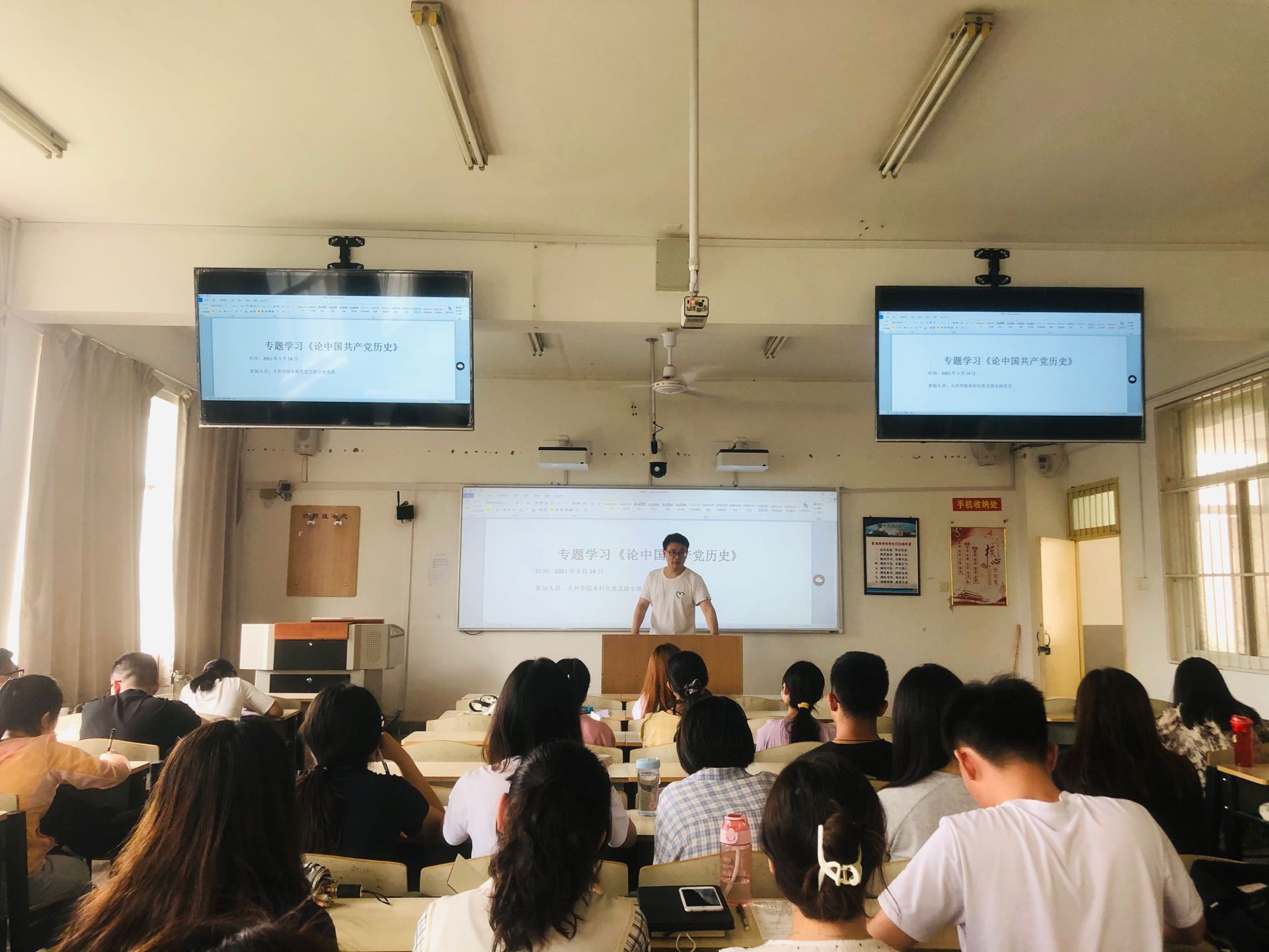 2021年5月14日,Beat365中文官方网站本科生党支部在骊山校园2教219召开了党支部大会,人外学院本科生党支部书记李银亮作为主讲人,院本科生党员及发展对象参加了会议。本次会议共有两项内容:一是开展《论中国共产党历史》的专题讨论学习,二是开展对凌慧等15名发展对象的接收表决会议。