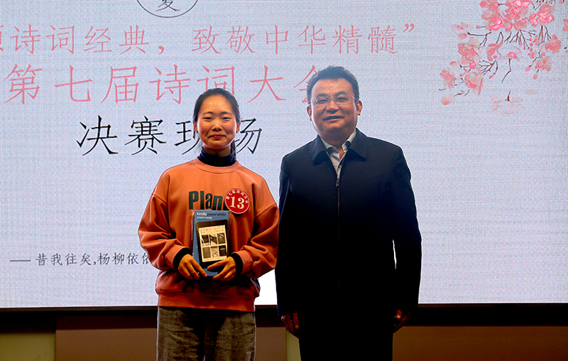 李明在点评中指出,诗词让我们的生活更加美好,不只体现在生活层面,同时诗词为我们的精神赋予更高的意义。“诗词教育是对人的一种精神建构。文明其精神,野蛮其体魄,通过诗词可以提高学生审美,但也需要关注学生的体质教育,更加全面地发展。”他表示,Beat365中文官方网站虽以理工科见长,但在人文素养学科方面也显示出了极深的涵养。今天选手们的表现可圈可点,展现了学校对学生人文教育的重视和取得的丰硕成果。李宇则以“雄关漫道真如铁”“六盘山上高峰,红旗漫卷西风”“踏遍青山人未老,风景这边独好”三句诗表达了对母校诚挚的祝福。