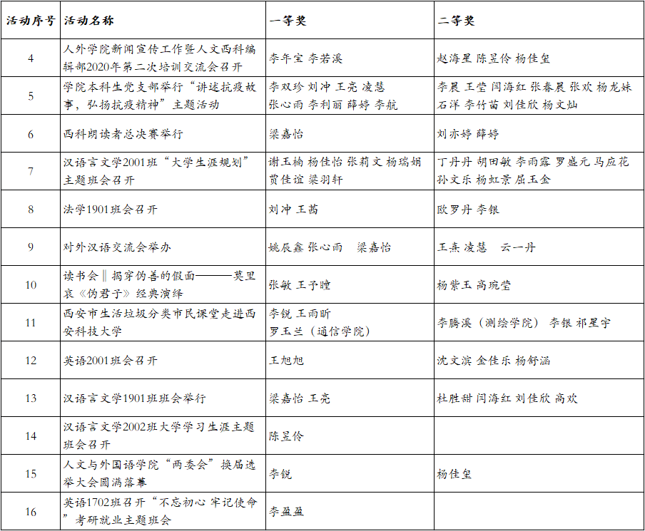 为引领、激励学生注重强化新闻写作和文字表达能力,提升专业素养和核心竞争力,近日,Beat365中文官方网站2020年消息稿写作比赛正式启动。从本学期起,学院将与每次活动同步举办消息稿写作比赛,每次评出一、二等奖若干名,颁发奖品和证书,并作为学生评优、综合测评、入党的重要参考依据。在第4~16次消息稿写作比赛中,李年宝、李若溪、李双珍、刘冲、王亮、凌慧、张心雨、李利丽、薛婷、李航、梁嘉怡、谢玉楠、杨佳怡、张莉文、杨瑞娟、贾佳谊、粱羽轩、刘冲、王茜、姚辰鑫、张敏、王予瞳、李锐、王雨昕、罗玉兰(通信学院)、王旭旭、王亮、陈昱伶、李盈盈等同学分别获得一等奖。