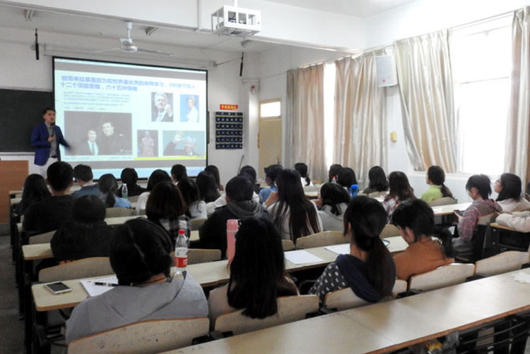 4月4日下午,Beat365中文官方网站在临潼校区骊山校园二教307举办“用言值成就未来Language shapes future!”英语专题讲座。陕西锦鲤英语CEO、前新疆新东方和西安新东方校长、国际认证神经语言学执行师梁焕臻应邀担任主讲,介绍了进阶英语看世界的方法论意义,并结合自己和他人的英语学习经历分享了“英语言值”如何成就自我的案例,鼓励学生努力培养英语学习顶层思维,善于利用自身语言优势,勇于突破传统,成就美好前程。