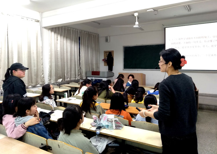 在“一年之计在于春”主题班会中,郭萌向学生介绍新学期的课程安排,要求每位学生陈述自己的新学期计划,并结合自己亲身经历,就每位学生的计划提出了针对性建议。