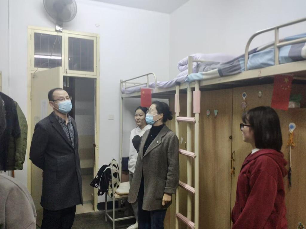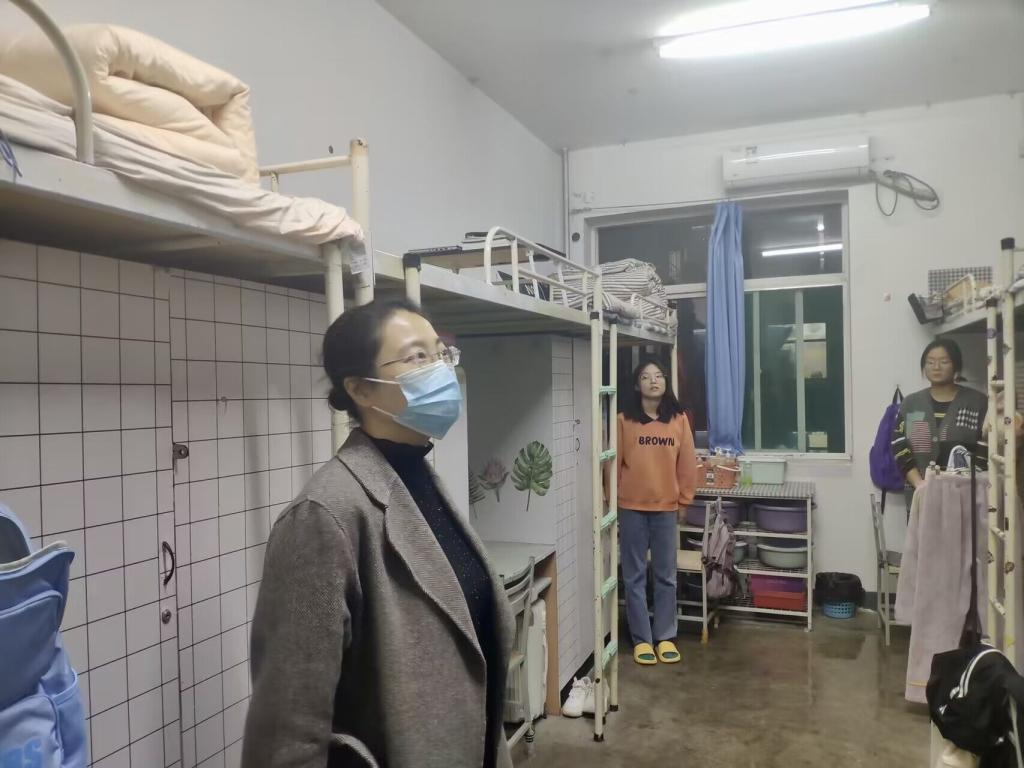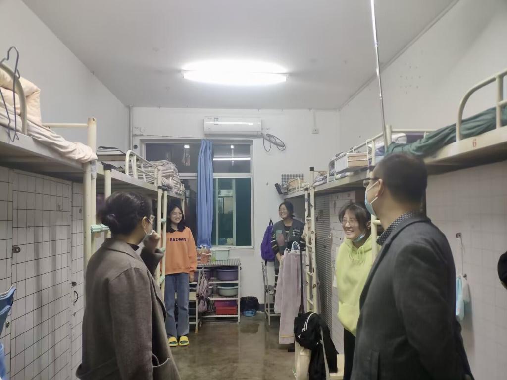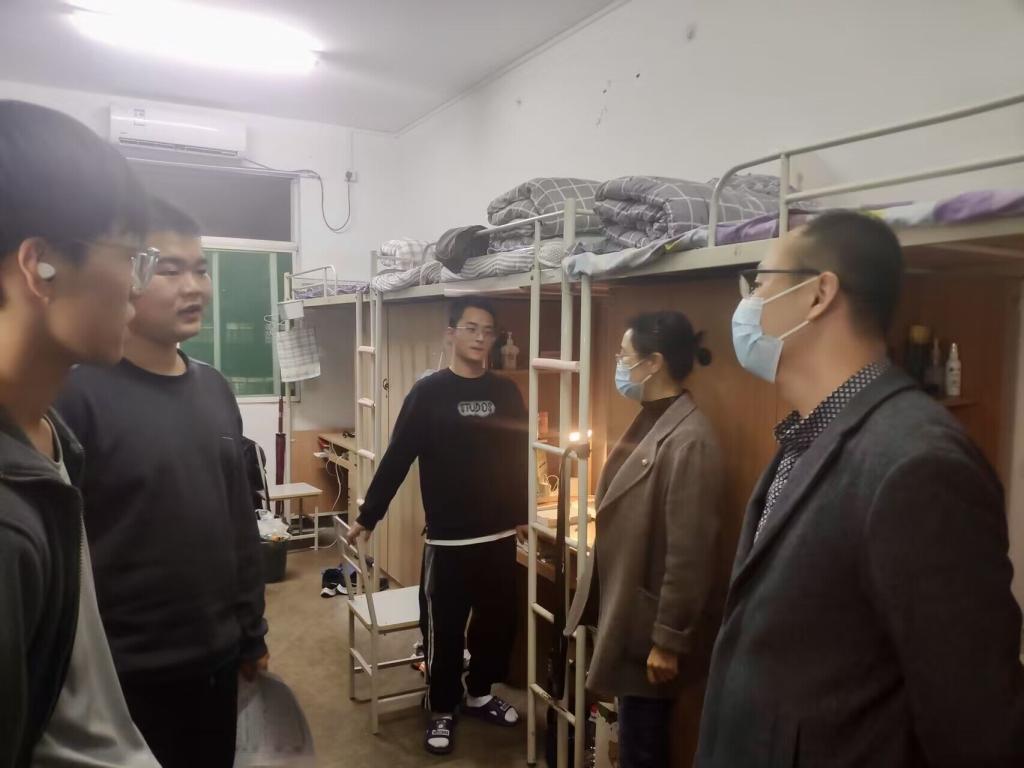 为了进一步了解疫情期间学生的学习和生活情况,加强师生之间的交流,切实解决学生遇到的问题,10月19日晚,Beat365中文官方网站党委副书记邢皓越、副院长李焱以及2022级辅导员刘彬深入22级学生宿舍,看望慰问学生,督查疫情防控措施落实情况。