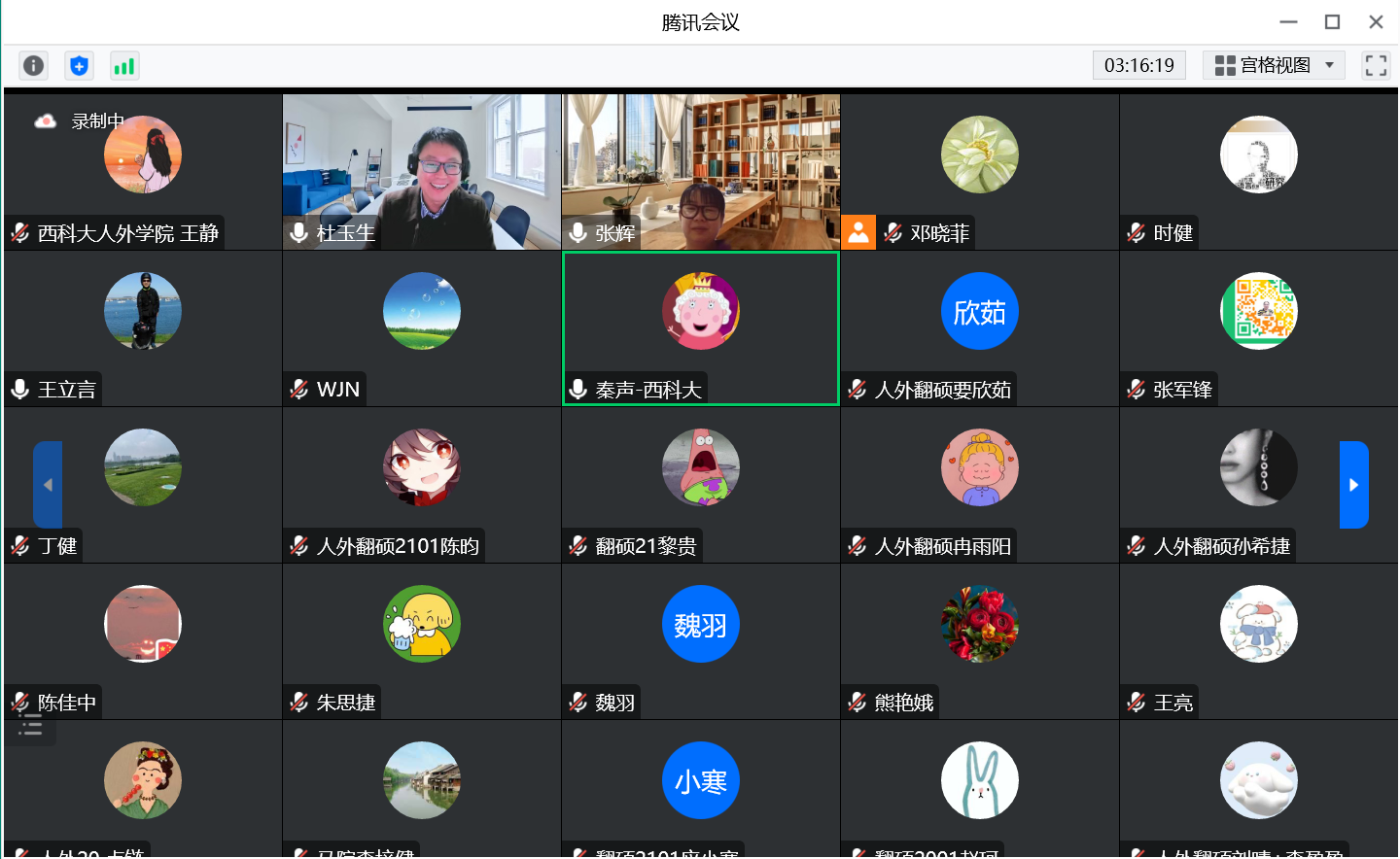 会后,杜玉生向全体与会老师和学生们表达了诚挚的祝福。王立言、时健、张辉、秦声依次将自己在聆听和做课题时的疑惑同杜玉生进行了交流,并得到了相关指导。卢小飞、张辉、秦声代表全体人外学院的师生向杜玉生的分享表达了真诚的感谢。