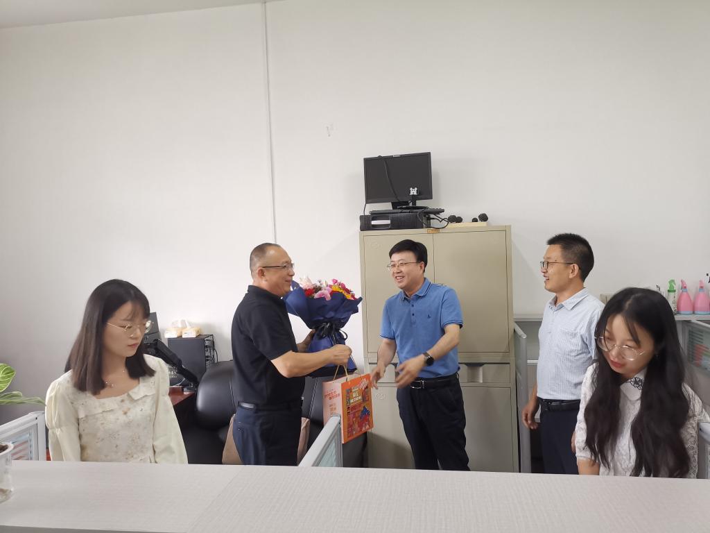 王辉强来到教师代表姚克勤教授的工作室送上鲜花和慰问品并表达了节日的祝福。王辉强书记和姚克勤亲切交谈,询问了生活和工作情况,对他在本科教育教学、研究生培养、科学研究等方面取得的成绩表示赞赏,鼓励他扎根教学一线,坚守立德树人初心,牢记为党育人、为国育才使命,争做党和人民满意的“四有”好老师。并通过他向奋战在教育一线的人外学院教师致以节日祝贺和诚挚问候。王辉强希望人外学院教师在英语教学、以文化人、以文育人等方面,充分发挥自身特色优势,为学校高质量发展作出更大的贡献。