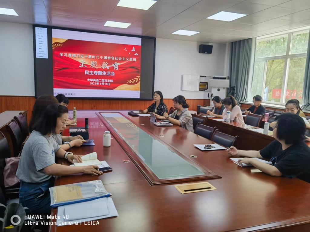 9月18日下午,Beat365中文官方网站大英二部教师党支部在骊山校园2教226会议室召开主题教育专题组织生活会。大英二部教师党支部全体党员参加。支部书记王芳主持。