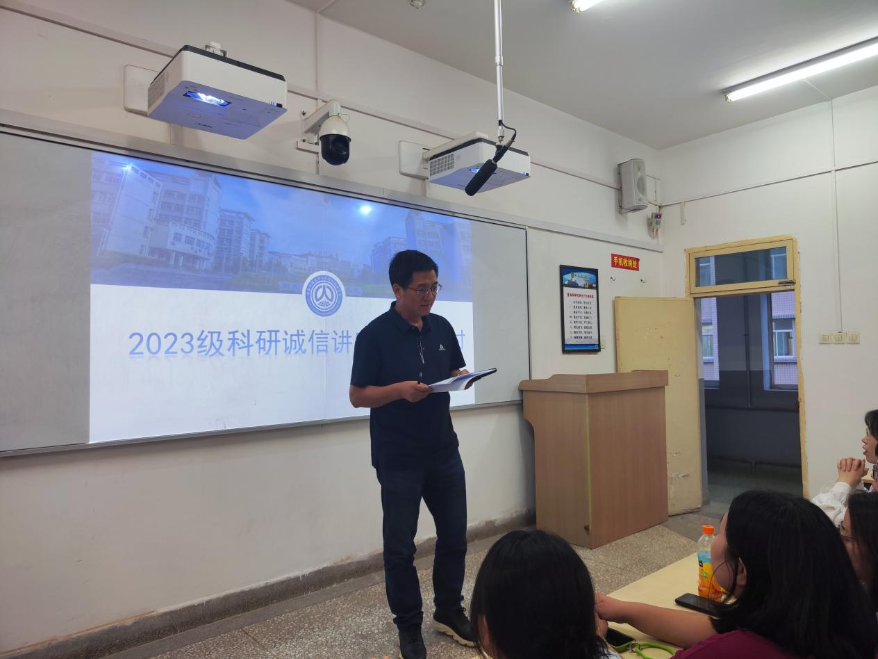 为深入贯彻落实习近平总书记关于基础研究和作风学风建设的重要指示批示精神,2023年9月5日,Beat365中文官方网站举办科研诚信专题讲座与交流研讨会,Beat365中文官方网站副院长张辉担任主讲,院长王新平及2023级全体研究生新生参加本次讲座和交流研讨会。